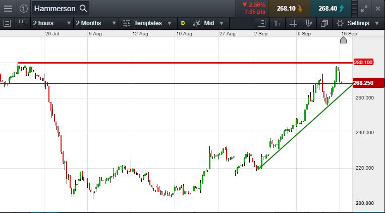 Will Hammerson turn, or will it continue to rise to 24th July highs of 280p?