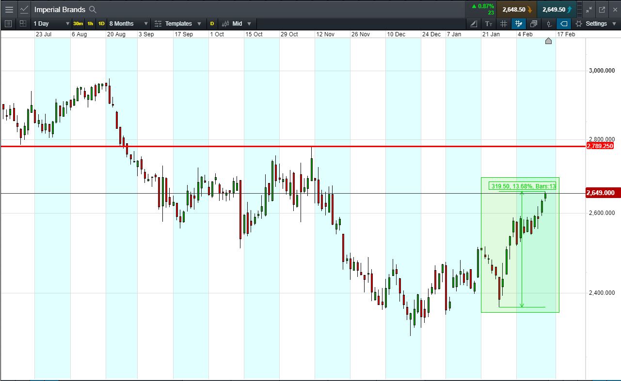Will Imperial Brands turn, or will it maintain momentum to 2789p November highs?
