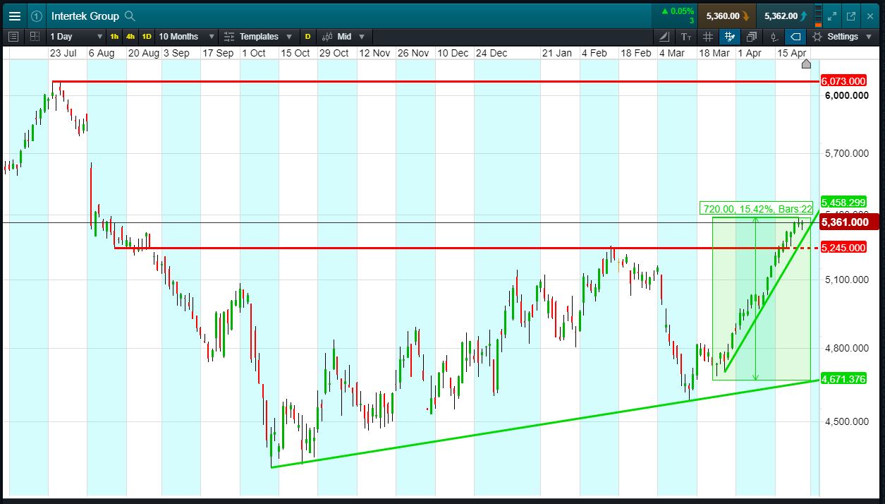 Will Intertek turn, or will it continue to rise to 6073p July highs?