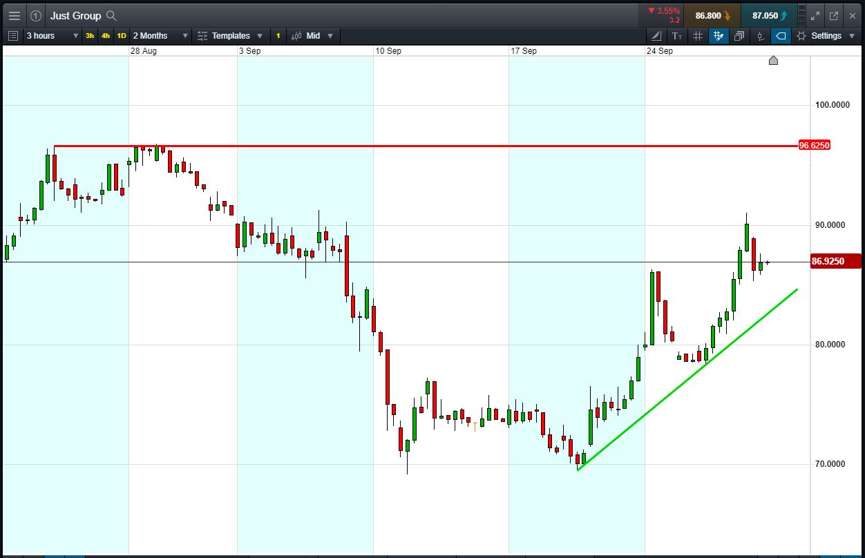 Let’s assume Just Group trend continues to 96p, last seen in late August (+10.4%). Your profit would be £1,040, from your initial investment of £2,000.