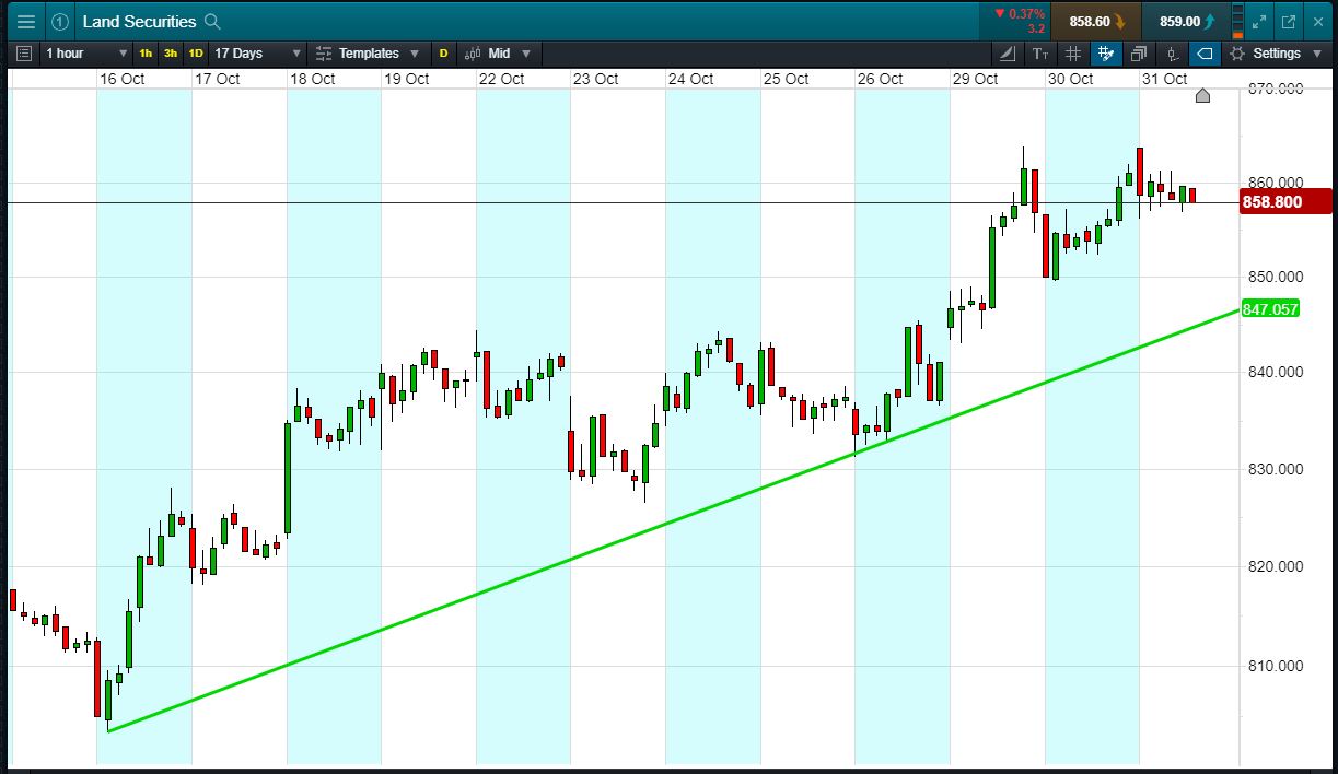 - The chart shows Land Securities price action over the past 3 weeks .
