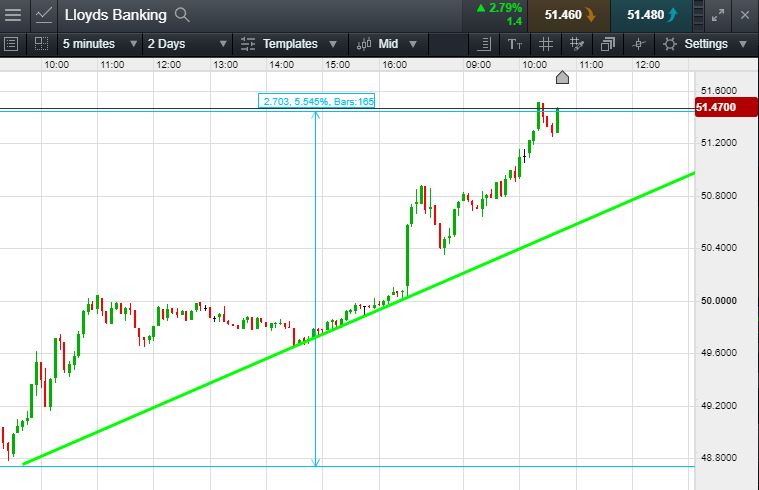 Will Lloyds Banking turn, or will it continue to rise to July 19 highs around 58.6p?