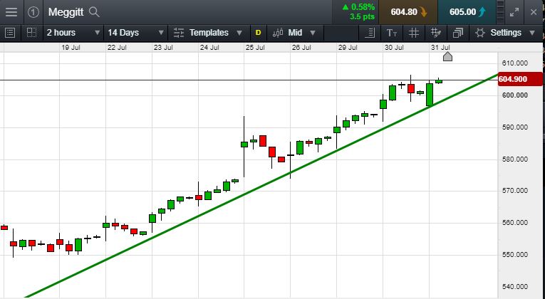 Will Meggitt turn, or will it maintain momentum to 662p Goldman Sachs TP 10 Jul?