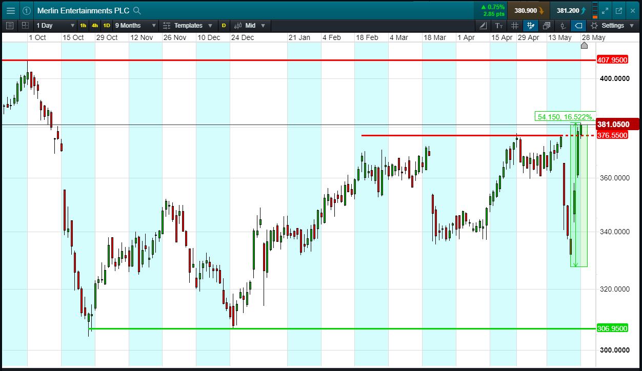 Let’s assume the Merlin Entertainments trend continues to highs of 407p (+6.8%). Your profit would be £680, from your initial investment of £2,000.