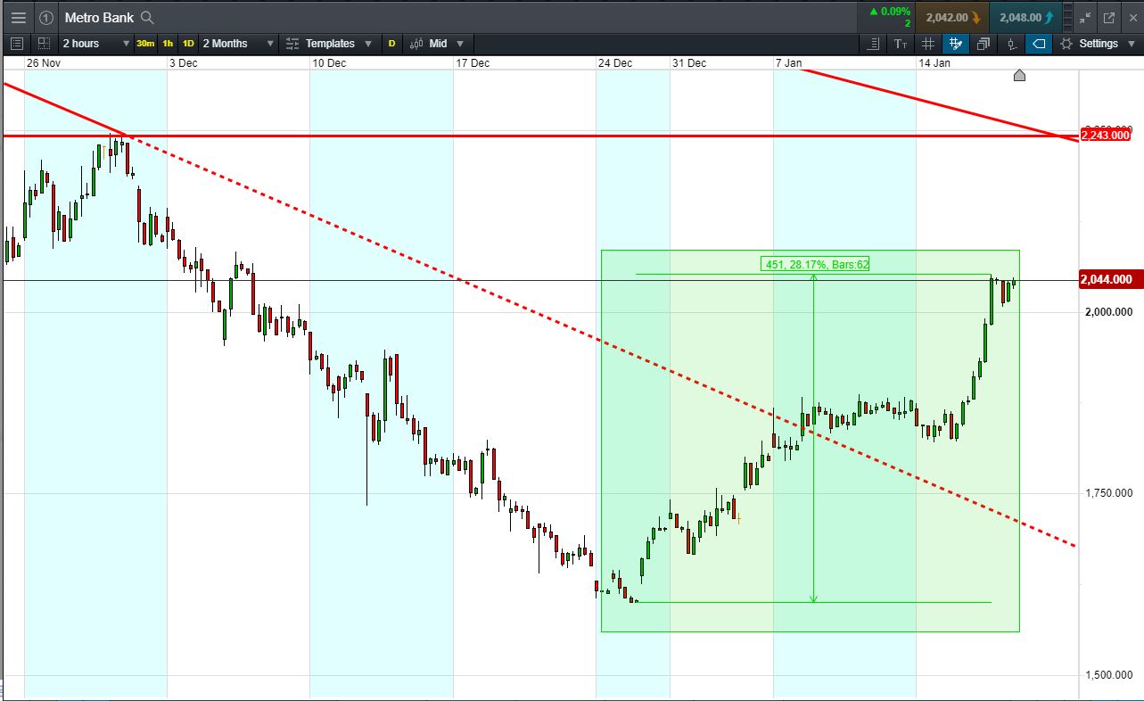 Will Metro Bank turn, or will it continue to rise to 2243p recent highs?