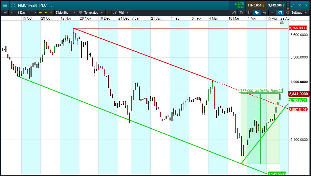 Will NMC Health turn, or will it rise back to 3765p Nov. highs?