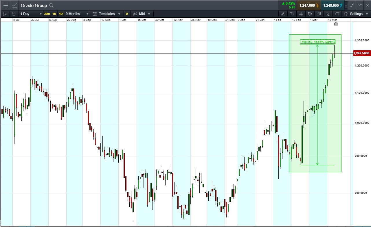 Will Ocado turn, or will it continue to rise to 1400p new record highs?