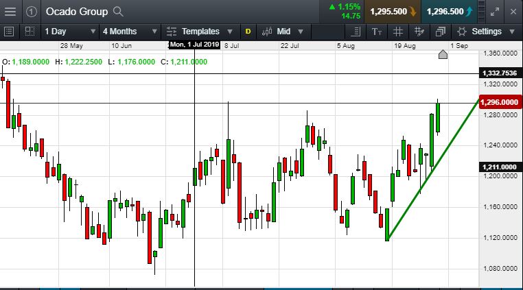 Will Ocado turn, or will it continue to rise to April highs of 1440p? (+11.1%)