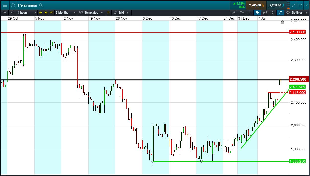 - Shares in a 3-week uptrend from 1838p lows; now at 2206p.