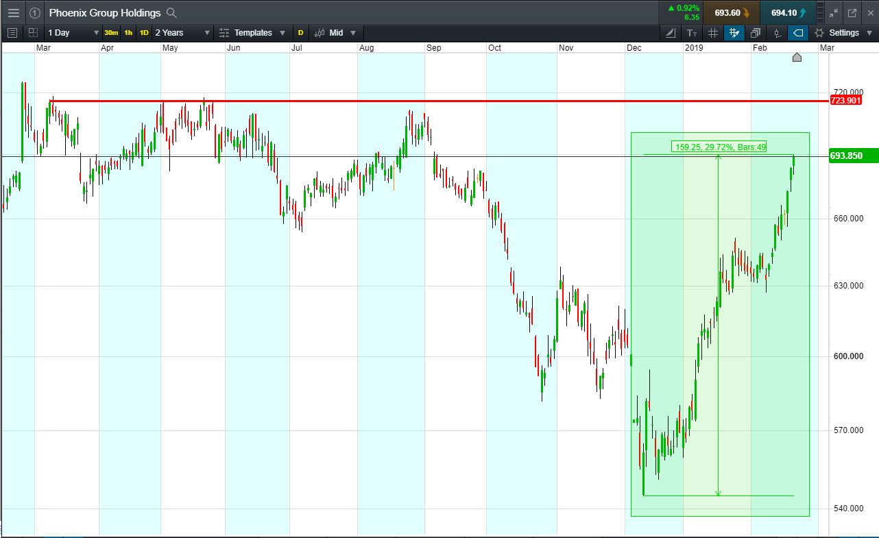 Will Phoenix Group turn, or will it continue to rise to May ’18 highs around 725p?
