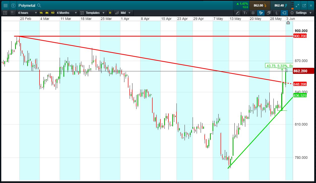 Will Polymetal turn, or will it continue to rise to 900p highs?