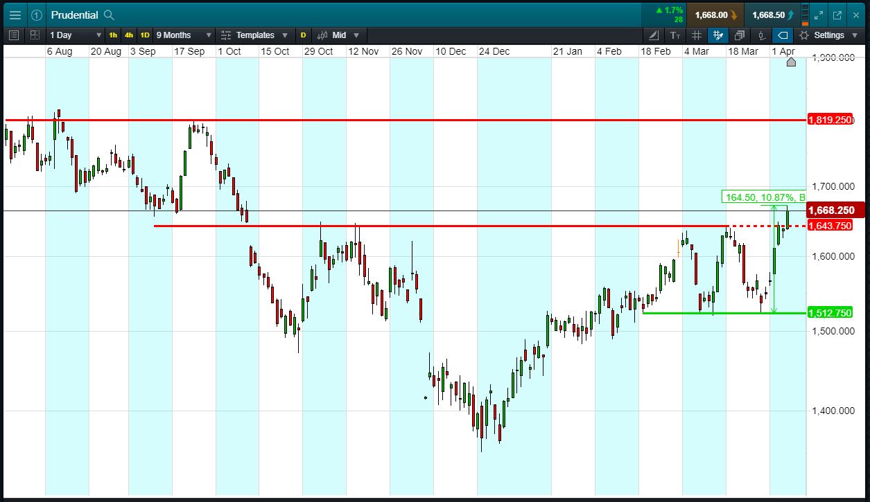 Let’s assume the Prudential trend continues to 1819p highs (+9.0%). Your profit would be £900, from your initial investment of £2,000.