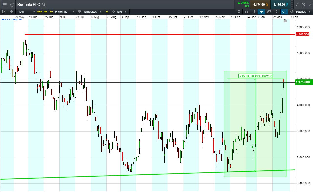 Will Rio Tinto turn, or will it continue to rise to 2018 highs around 4540p?