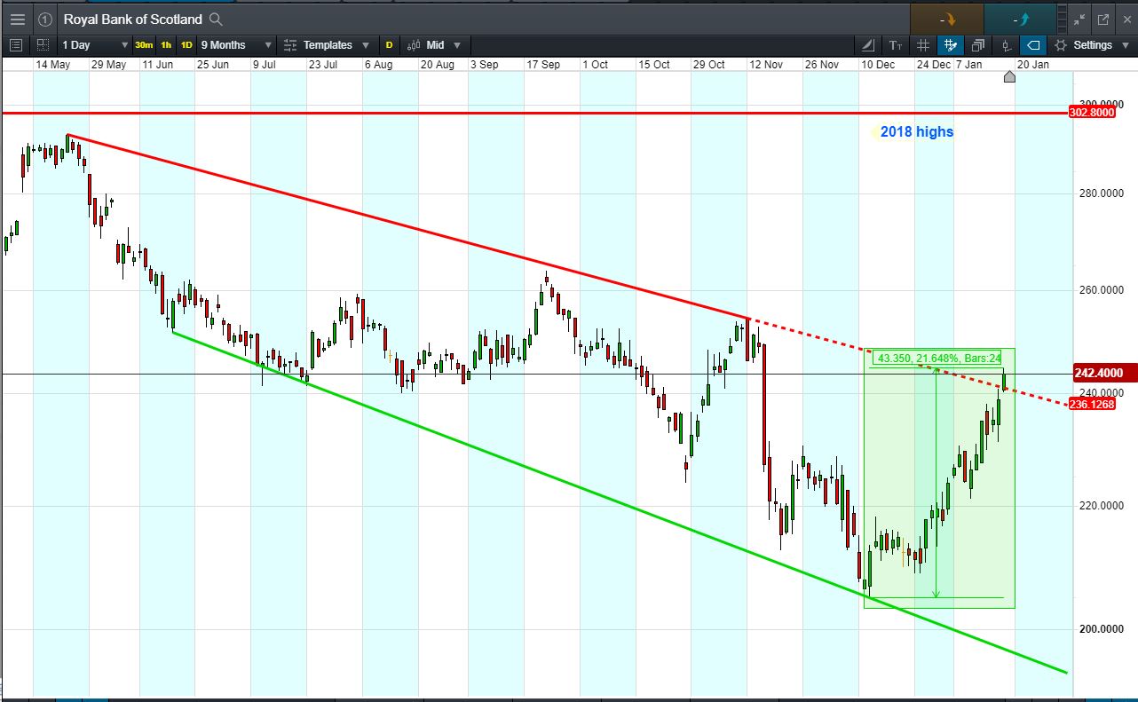 Will Royal Bank of Scotland turn, or will it continue to march upwards to 302p?