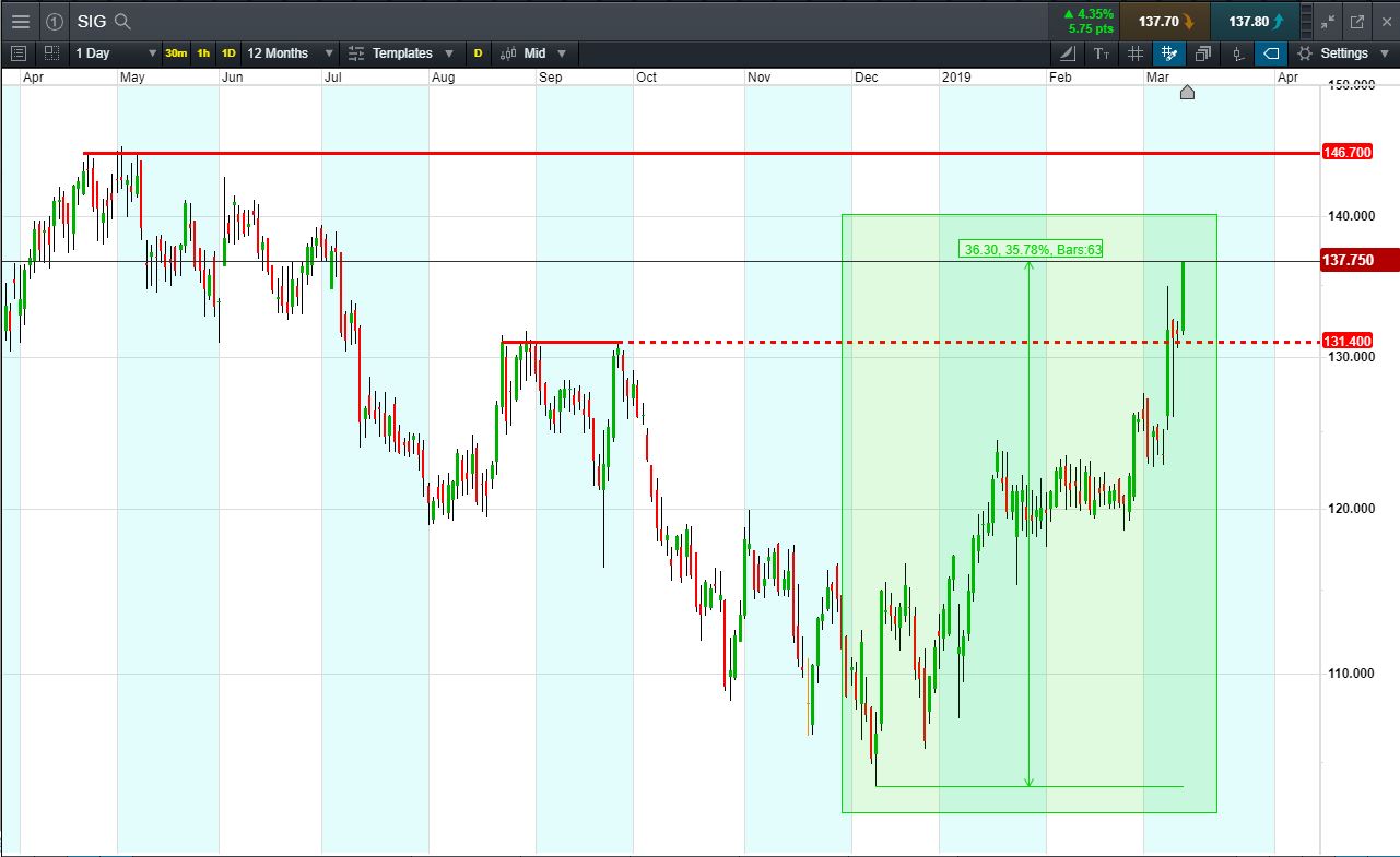 Will SIG turn, or will it continue to rise to 146p May 2018 highs?
