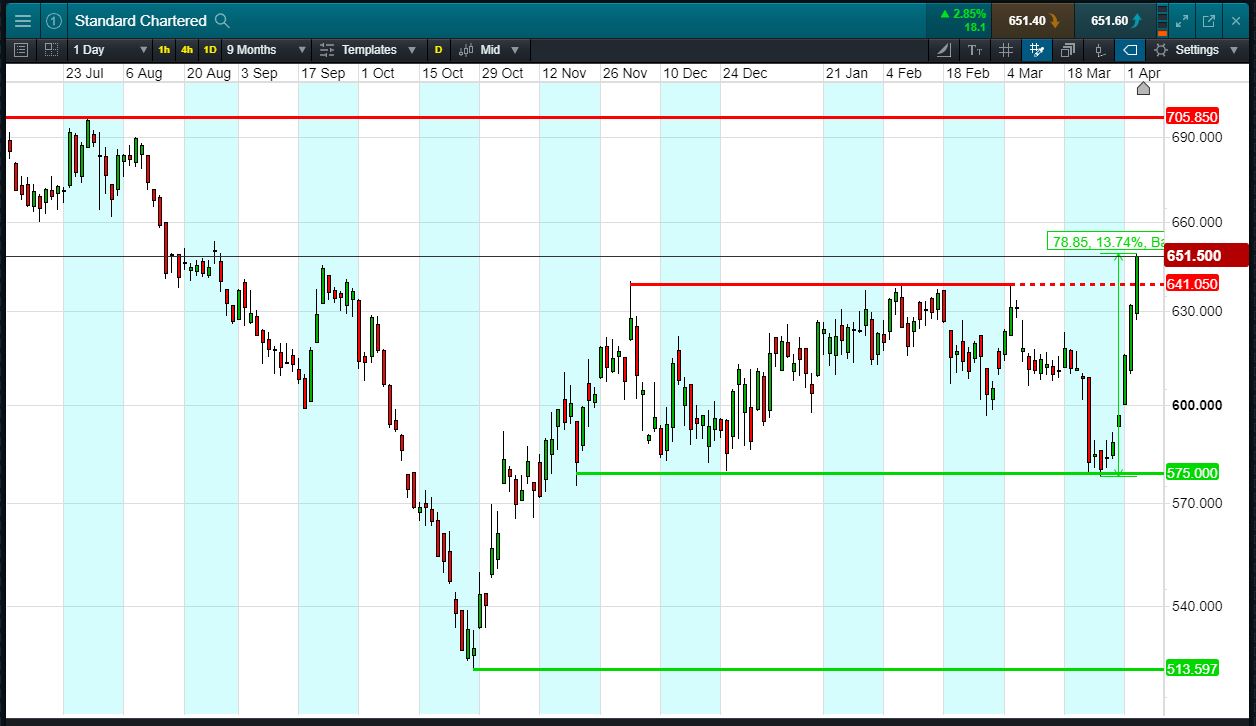 Will Standard Chartered turn, or will it continue to rise to 705p highs?