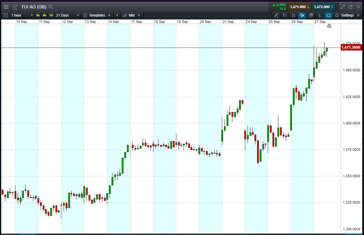 Let’s assume TUI trend continues to 1,604p August highs (+9%). Your profit would be £900, from your initial investment of £2,000.