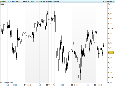 UK 100 called to open +5pts at 6730, kicking off the first full week of the New Year on a marginally positive note after a mixed US close on Friday thanks to mixed macro data and Fed speakers (Plosser, Lacker) questioning the strength of US recovery and Bernanke potentially using his last speech to defend his tenure and say that while upbeat about the recovery he is conscious it is far from complete.