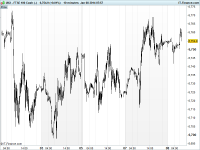UK 100 called to open +5pts at 6755, with yesterday’s progress towards the top end of the 2-week 6700-6775 trading range thanks to US equities closing higher for the first time and Asia following suit overnight after a tough start to 2014.