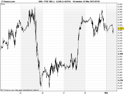 Asian markets mixed, with China a notable underperformer overnight after PMI but Japan’s posting of more deflationary data and sluggish demand has helped keep JPY weak (more stimulus expected), boosting Nikkei-listed equities. Global sentiment also tempered by looming US sequester (today is d-day), with and a deal between Democrats and Republicans looking unlikely and limited progress in the week following the messy Italian election.