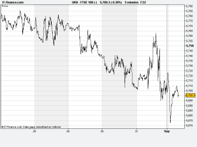 UK 100 called to open -5 points, as Ben Bernanke offered hints, but no certainty of action to come at last Friday’s Jackson Hole speech. An interesting 2 weeks await until the next FOMC meeting with upcoming macro-economic data viewed to support/negate speculation of QE3. The Non-Farm Payroll number at the end of the week could be have added gravitas, as the job market was highlighted as “important to achieve further progress” by Bernanke.