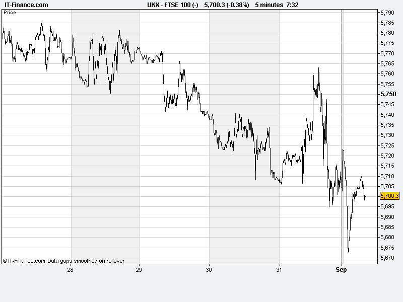 | UK 100 | 5711.48 | -7.97 | -0.14 | 2.5 |