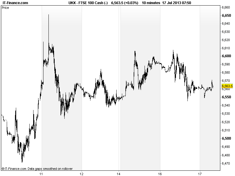 UK 100 called to open flat at 6560 with Asian equities mixed/in the red ahead of the US Fed Chairman’s testimony to Congress. Given short time since his last communication with the markets (10 Jul) it is unlikely he wavers much from what was sad last time, reiterating intentions to taper if data keep improving, but that policy to remain highly accommodative. As with last time, Q&A likely to be where any market excitement emerges (even if data improve, low inflation could keep QE3).