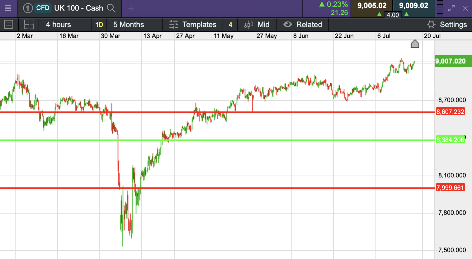 | UK 100 INDEX | 8,973 | 0.5% | 9.4% |