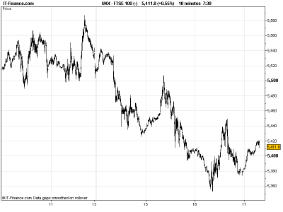 | UK 100 | 5405.25 | -32.37 | -0.6 | -3 |