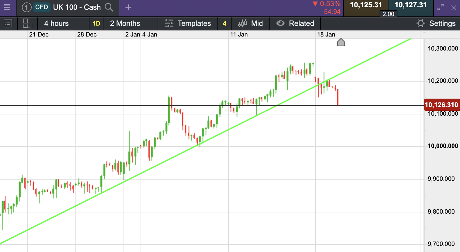 The UK 100 is called to open flat at 10,126. The UK 100 looks set to open flat this morning having fallen for the past two sessions, this follows data out this morning which showed the UK’s annual rate of inflation today rose by more than expected to 3.4%. The figure for December compares with the previous month’s reading of 3.2% and the 3.3% forecast in the City. ONS chief economist Grant Fitzner said: “Inflation ticked up a little in December, driven partly by higher tobacco prices, following recently introduced excise duty increases. “Airfares also contributed to the increase with prices rising more than a year ago, likely because of the timing of return flights over the Christmas and New Year period. Rising food costs, particularly for bread and cereals, were also an upward driver.