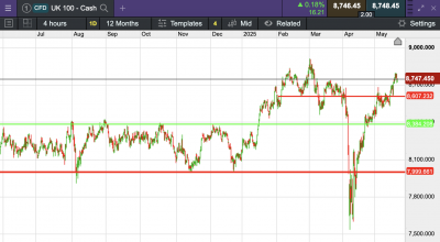| UK 100 INDEX | 8,786 | 0.1% | 4.4% |