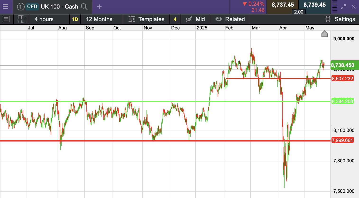 | UK 100 INDEX | 8,739 | -0.5% | 4.8% |