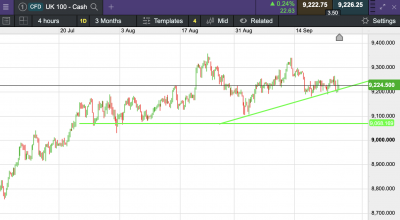 The UK 100 is called to open +2 points this morning at 9,225.