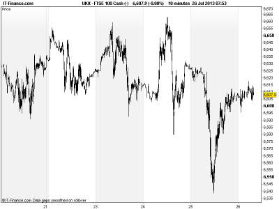 UK 100 called to open +20pts around 6610, (the same opening call level of the last 3 days!) thanks to a positive lead from the US and Asia-ex-Japan, as WSJ Fed watcher Hilsenrath said the Fed will leave QE3 unchanged at next week’s policy meeting.