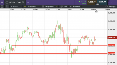 The UK 100 called to open +41 points this morning at 8,704