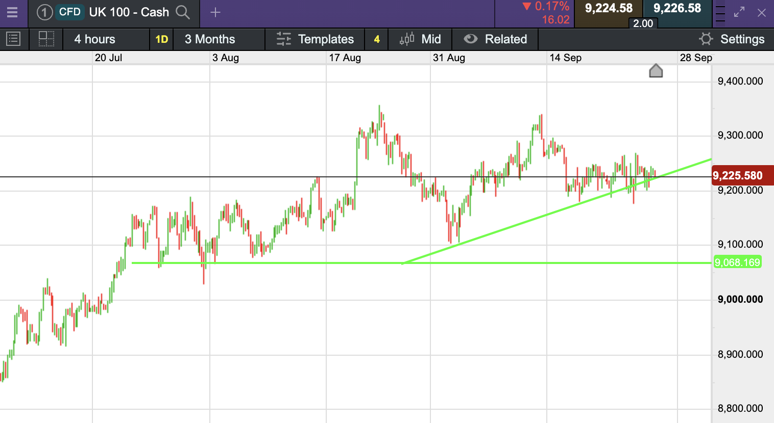 The UK 100 is called to open +14 points this morning at 9,227.