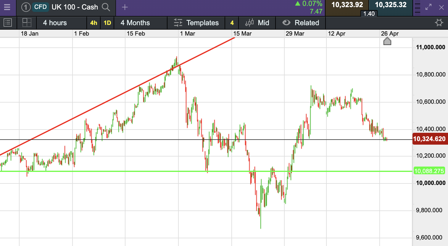 The UK 100 is called to open +3 points at at 10,323. The UK 100 looks set to open modestly higher this morning having dropped 58 points yesterday.