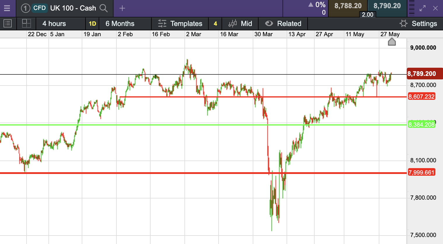 The UK 100 called to open flat this morning at 8,772.