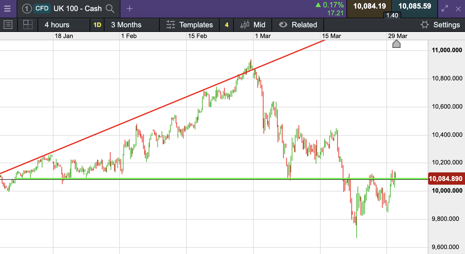 The UK 100 is called to open -36 points at at 10,092. The UK 100 looks set to open marginally lower on Tuesday, as investors balance rising inflation pressures with ongoing geopolitical uncertainty. Futures indicate the UK 100 will edge down 36 points to 10,092, following a 1.6% gain on Monday.