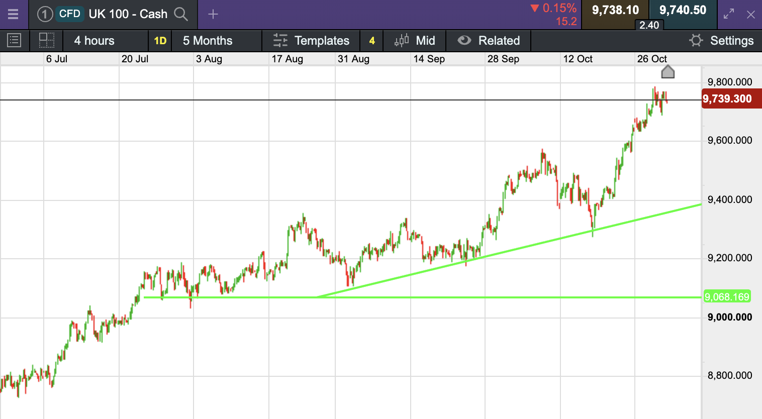 The UK 100 is called to open -20 points at 9740.