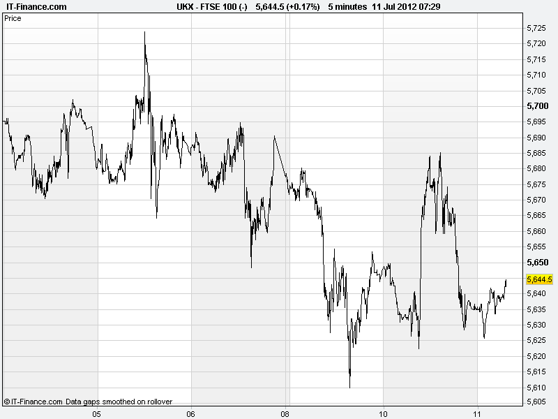 UK 100 is called to open 30 points lower this morning being dragged down by losses in US and Asian markets overnight. The Dow Jones closed down 83 points at 12,653 whilst the Nikkei was was recently down around 40 points at 8,818. It was a mixed day yesterday as stocks first reacted well to Euro finance ministers agreeing the terms on a Spanish bailout package for banks. Moods then quickly changed after Germany’s high court delayed their decision on whether participation in the bailout fund is constitutional.