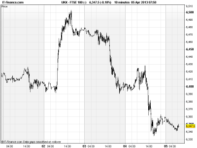UK 100 called to open -5pts, with Asian bourses again mixed despite a positive US close. Wall Street helped by BoJ’s historic monetary easing announcement (shrugging off poor jobless claims and Eurozone PMI Services), and the BoJ’s news continues to help the Nikkei (highest since Aug ’08) via weaker JPY boosting exporters.
