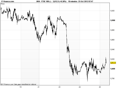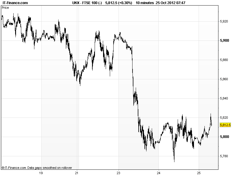 UK 100 called to open -5pts, with trading remaining in that limited 5790-5820 range. Asian markets benefiting from a pre-market report that Japanese government plans to compile a stimulus package worth ¥400bn, double that originally planned to reboot the economy. This has seen the yen (JPY) continue its weakening versus the dollar (USD), breaking the 80 level, exacerbated by existing speculation that the Bank of Japan (BoJ) might add to its asset purchase programme.