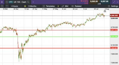 The UK 100 called to open +20 points this morning at 9,088.