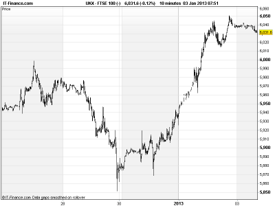 Having powered though the 6000 marker the question is whether it will revert to support on any pullback. If so, then we must look to mid-crisis highs of 6100/6130 from April 2011 as the next target and resistance. As we said yesterday, however, US political wrangling is set to continue and next week will see trading floors back at full capacity.