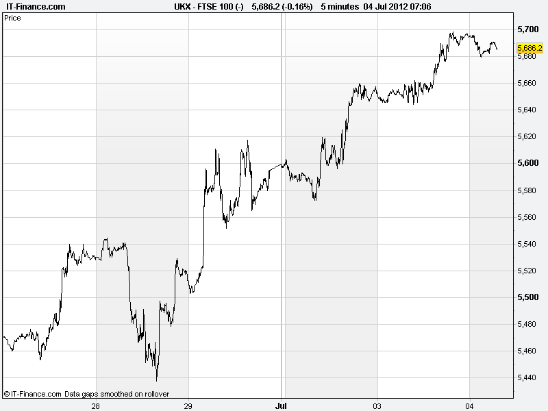UK 100 is called to open down by around 7 points this morning after fairly flat Asian markets over night as well as no activity in the afternoon from the US markets due to Independence Day. The Dow Jones managed to close up by 72 points yesterday in their shortened trading session while the Nasdaq added 25 points to close at near 3-month highs of 2,976. In Asia, the Nikkei was up around 28 points at 9,094 while the hang seng closed up 35 points at 19,771.