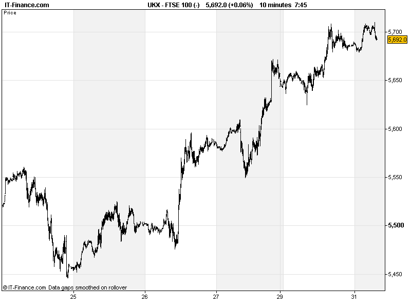 Having regained the 5,700 level yesterday (on hopes of central bank monetary/economic stimulus) from lows of 5,450 a week ago, no serious ground was made overnight with market participants in a wait-and-see mode for any stimulus to be delivered, or not as the case may turn out to be. Note today is month-end which can give rise to volatility as traders/investors look to window-dress/flatter their portfolios to show performance in the best possible light.
