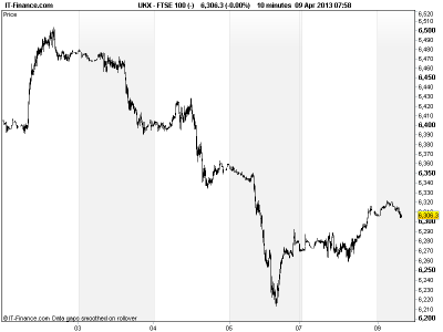 UK 100 called to open +30pts, with Asia-Pacific trading higher again benefiting from the BoJ’s aggressive easing policy, hopes that softer Chinese inflation figures (lower food prices) would mean continued loose policy from Beijing and a well taken Q1 results by US earnings season starter Alcoa, with one-offs and cost cutting offsetting lower aluminium prices.
