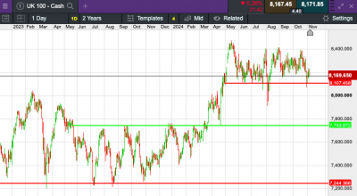 The UK 100 called to open +81 points at 8,252. The UK 100 looks set to open higher this morning, as traders await not only the official outcome of the US election (Fox news are projecting that Republican candidate Donald Trump will win the election) but also look ahead to tomorrows Bank of England and Federal Reserve interest rate decisions.
