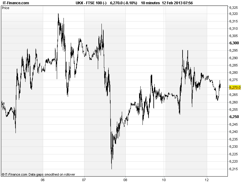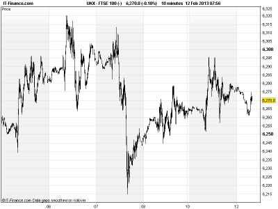 UK 100 called to open flat, with several Asian markets still closed and volumes thin due to Lunar New year celebrations. Japan’s Nikkei higher, playing catch-up after long weekend, after a further weakening of the JPY, especially after comments from a US Treasury member that Washington was in favour of Tokyo’s efforts to stimulate growth and promote inflation (a benefit for US consumption via lower prices), as well as comments from the BoJ that more easing could be justified this year.